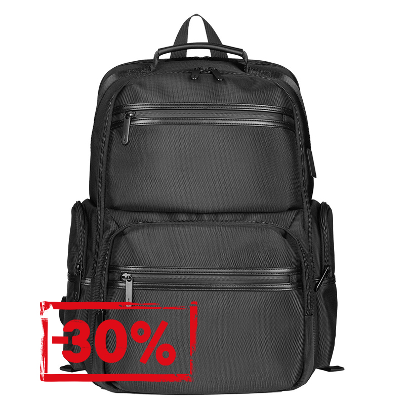 Ranac sa dva odeljka, dodatni odeljci za tablet i laptop veličine ekrana 15″, tri džepa sa rajsferšlusom napred, dva džepa sa rajsferšlusom sa strane, sa zadnje strane postava.